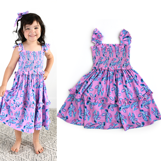 Waverly Sea Turtles Smocked Dress Bamboo Kids Outfit
