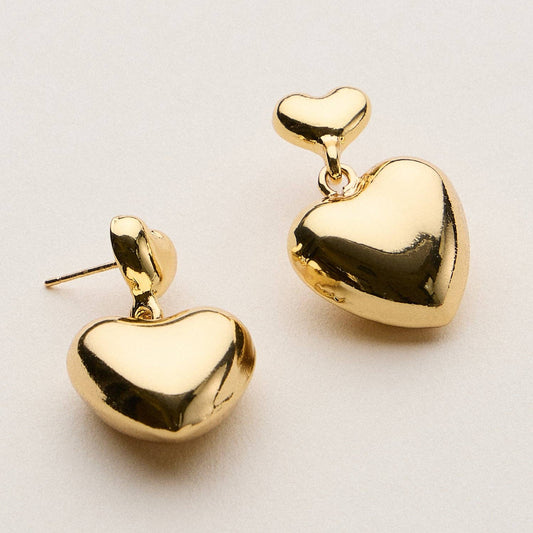 Gold Dipped Double Heart Drop Earrings - 18K Gold Dipped