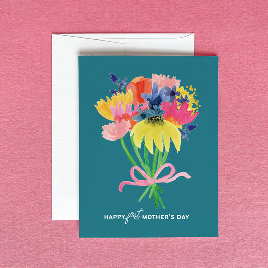 Happy Mother's Day Pink Watercolor Stripes Greeting Card