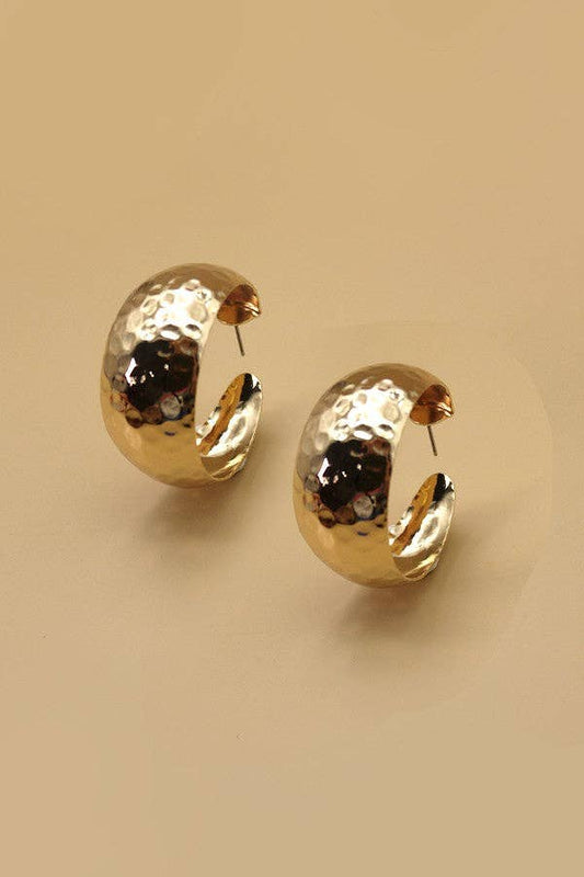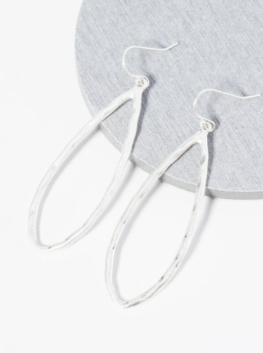 Hammered Metal Elongated Teardrop Dangle Earrings