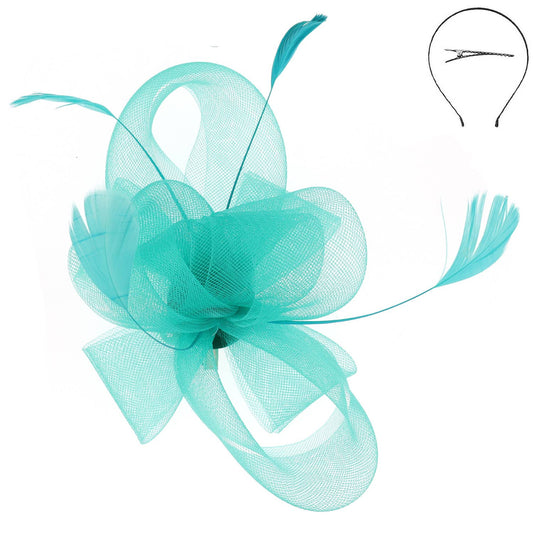 Large Organza Bow w/ Feathers Fascinator Headband