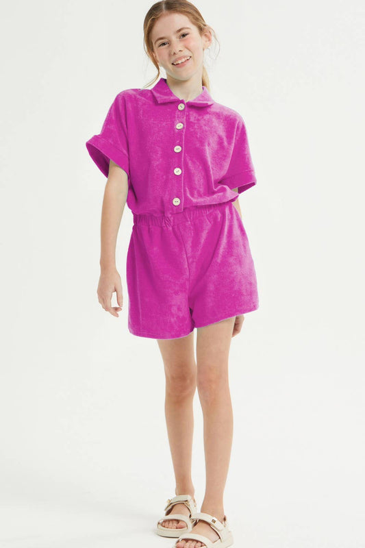 Loop Terry Collared Button Up Romper