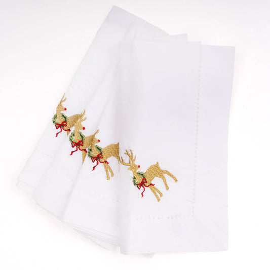 Reindeer Embroidered Dinner Napkins - 4 Piece Set