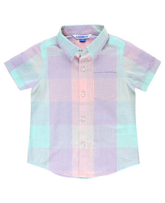 Boys Cotton Candy Plaid Short Sleeve Button Down Shirt
