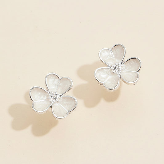 Flower Stud Earrings with Pearl and Rhinestone Center