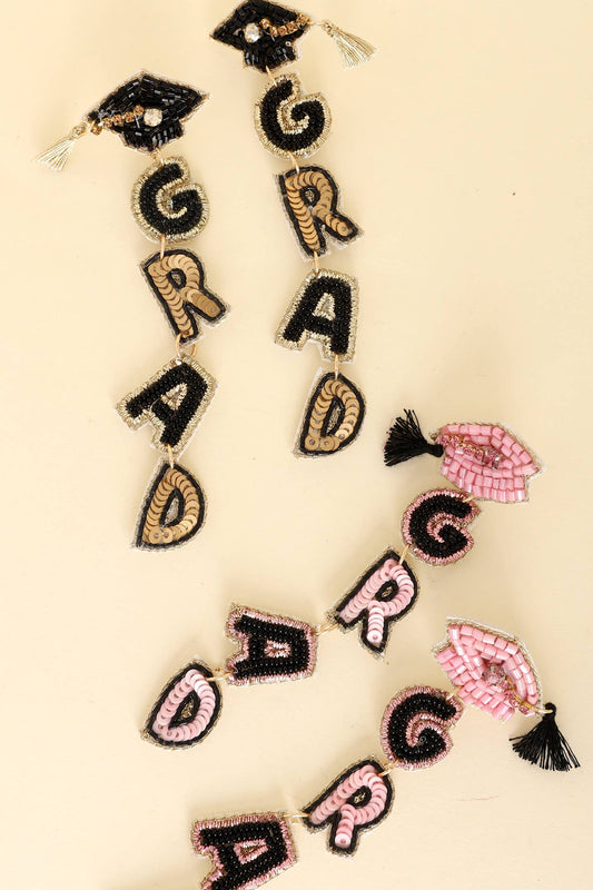 Grad Letter Beaded Sequins Graduate Cap Earrings