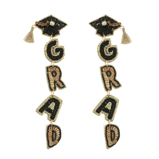 Grad Letter Beaded Sequins Graduate Cap Earrings