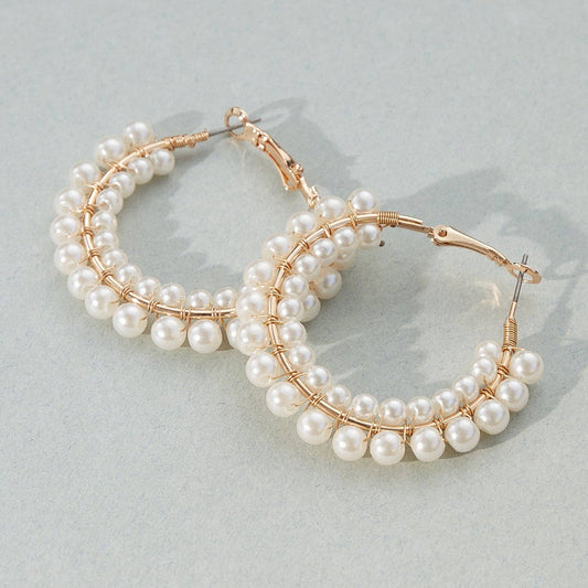 Pearl Paved All Around Hoop Earrings