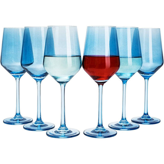 Set of 2 Blue Colored Wine Glasses - 12 oz Hand Blown