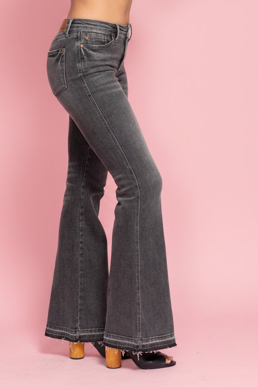 Judy Blue Mid-Rise Tummy Control Washed Gray Release Hem Flare Jeans