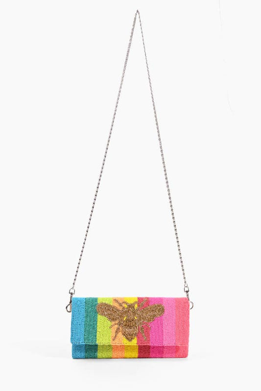 Rainbow Bee Beaded Clutch