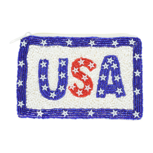 Patriotic America USA Letter Beaded Coin Bag