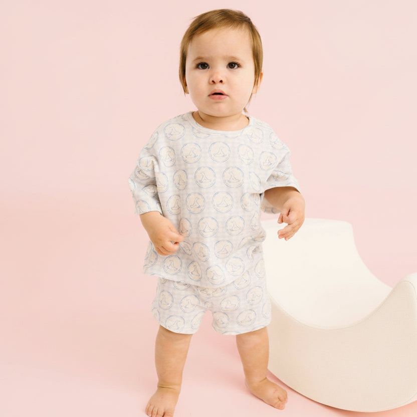 Two-Piece Daywear: Includes a short-sleeve slouchy tee and matching easy-on shorts.