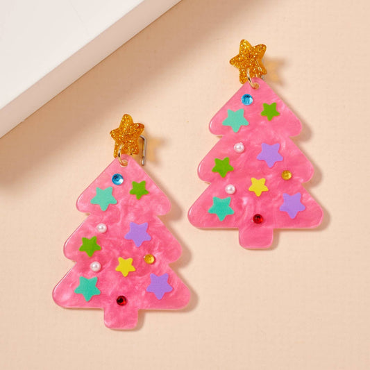 Christmas Candy Cane Palm Tree Enamel Stud Earrings