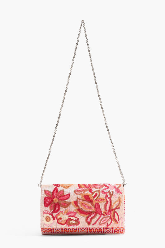 Embellished Convertible Clutch w/ Strap - Petal Pink