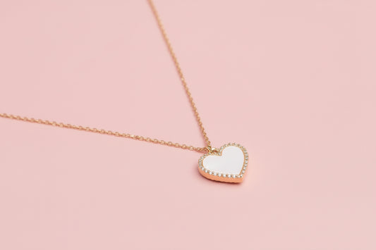 Gold Heart Pendant Necklace with Enamel and Crystal Charm
