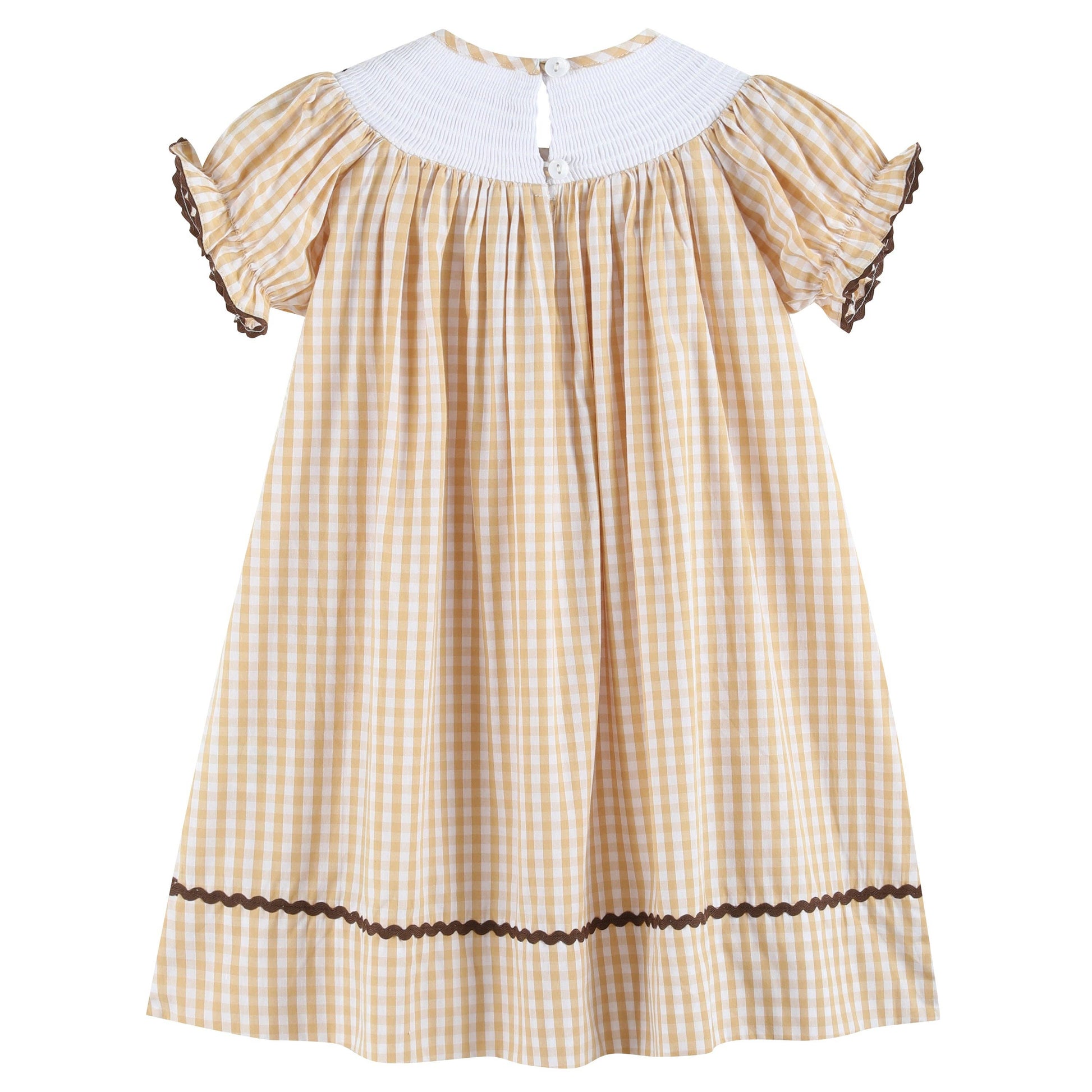 Brown Gingham Turkey Smocked Bishop Dress
