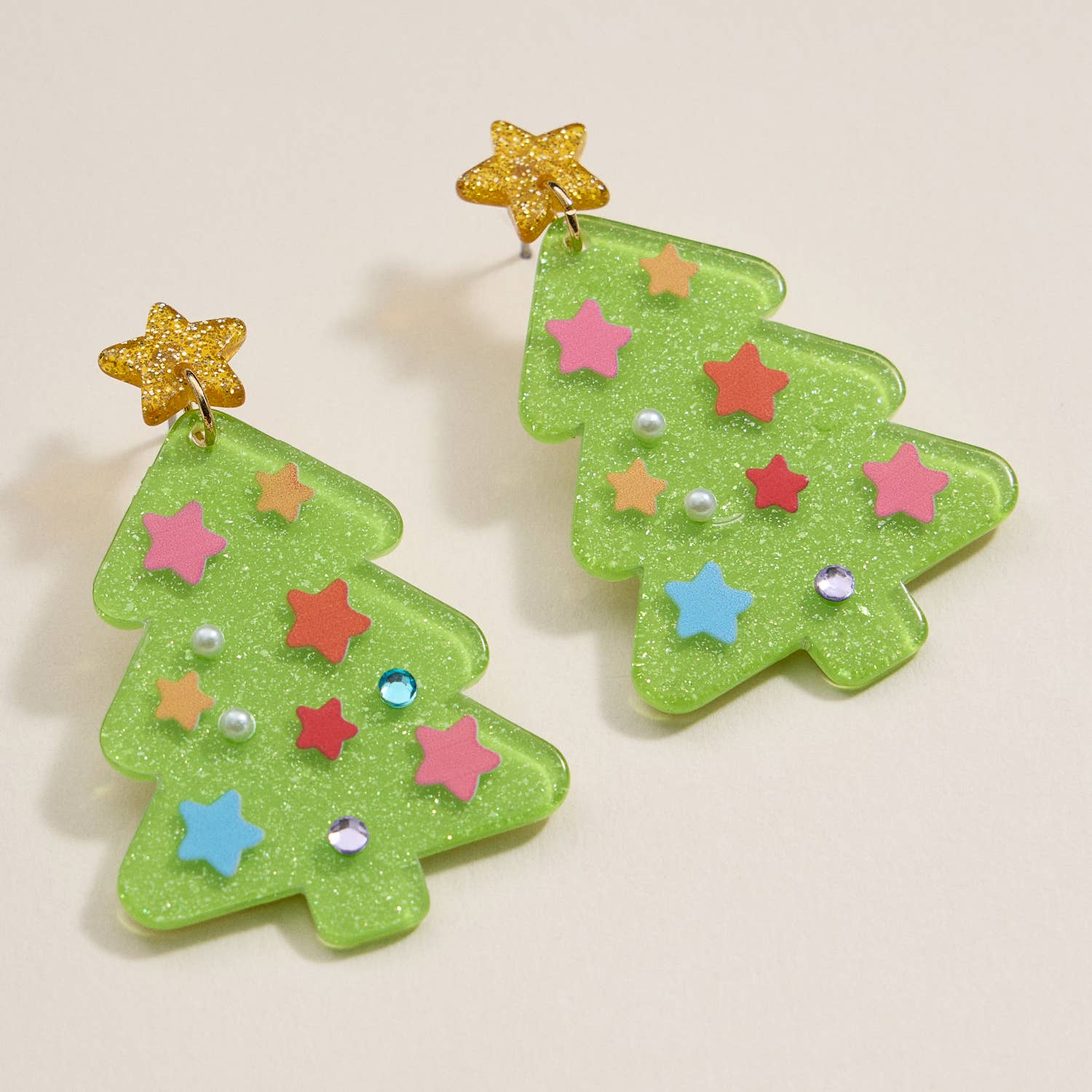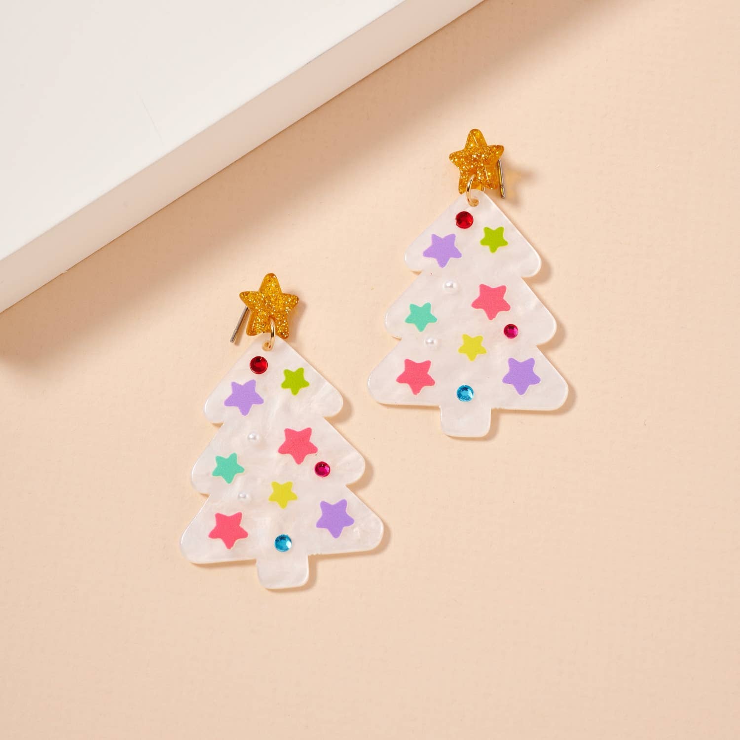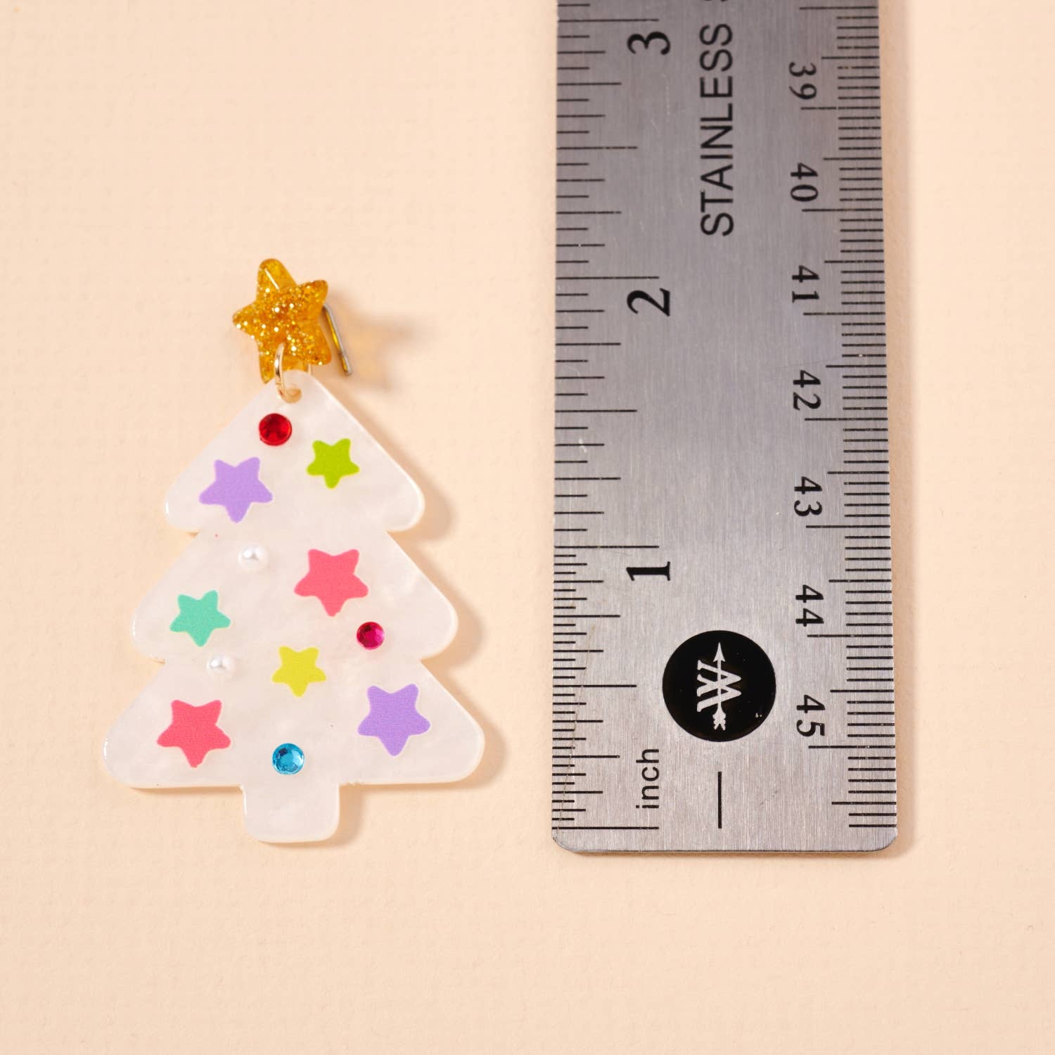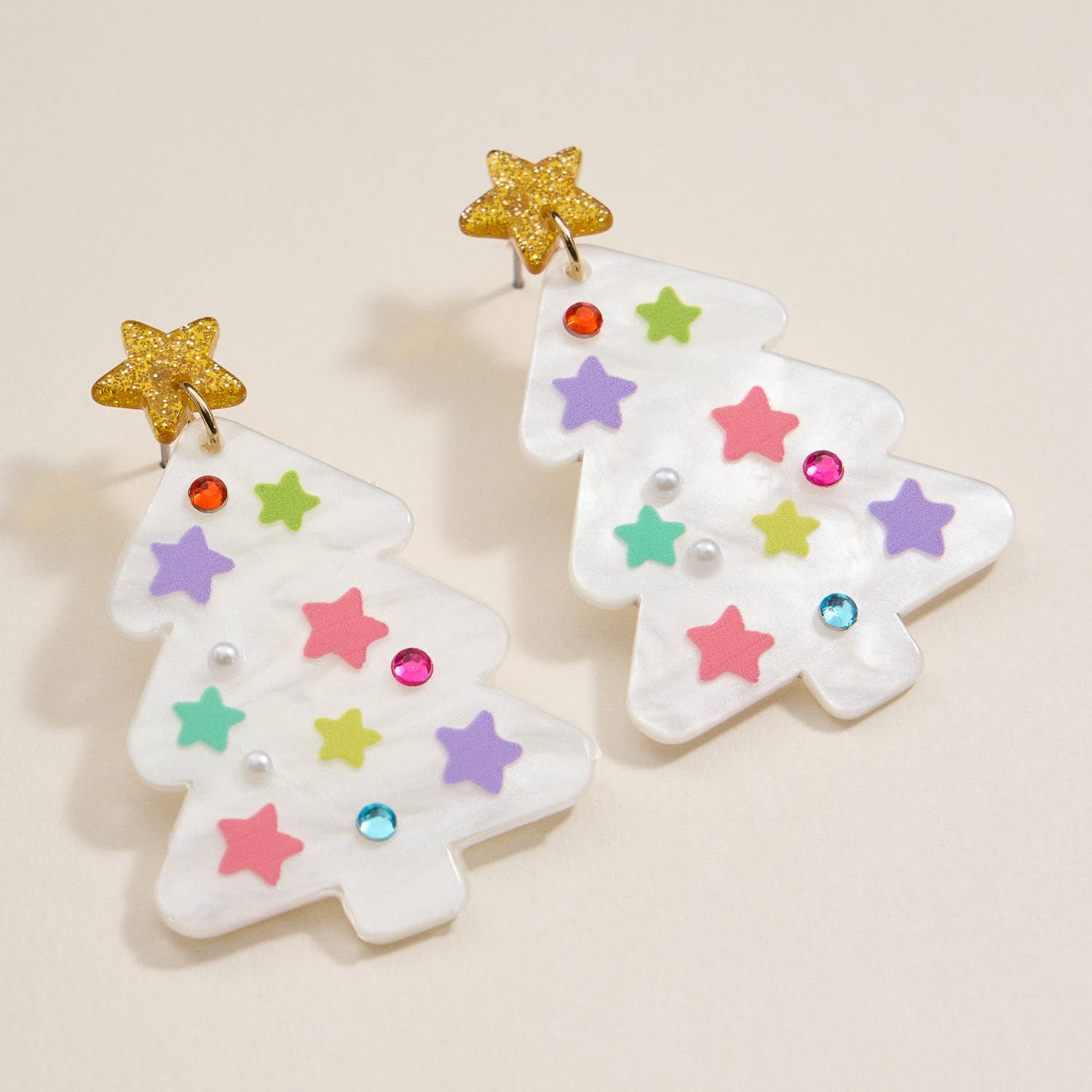 Get festive this holiday season with our Christmas Tree decorated with Stars, pearls and colorful rhinestones Dangling Earrings. Adorned with sparkling stars, these earrings will be the perfect addition to your Christmas attire. Show off your holiday spirit and add a touch of elegance to your look.