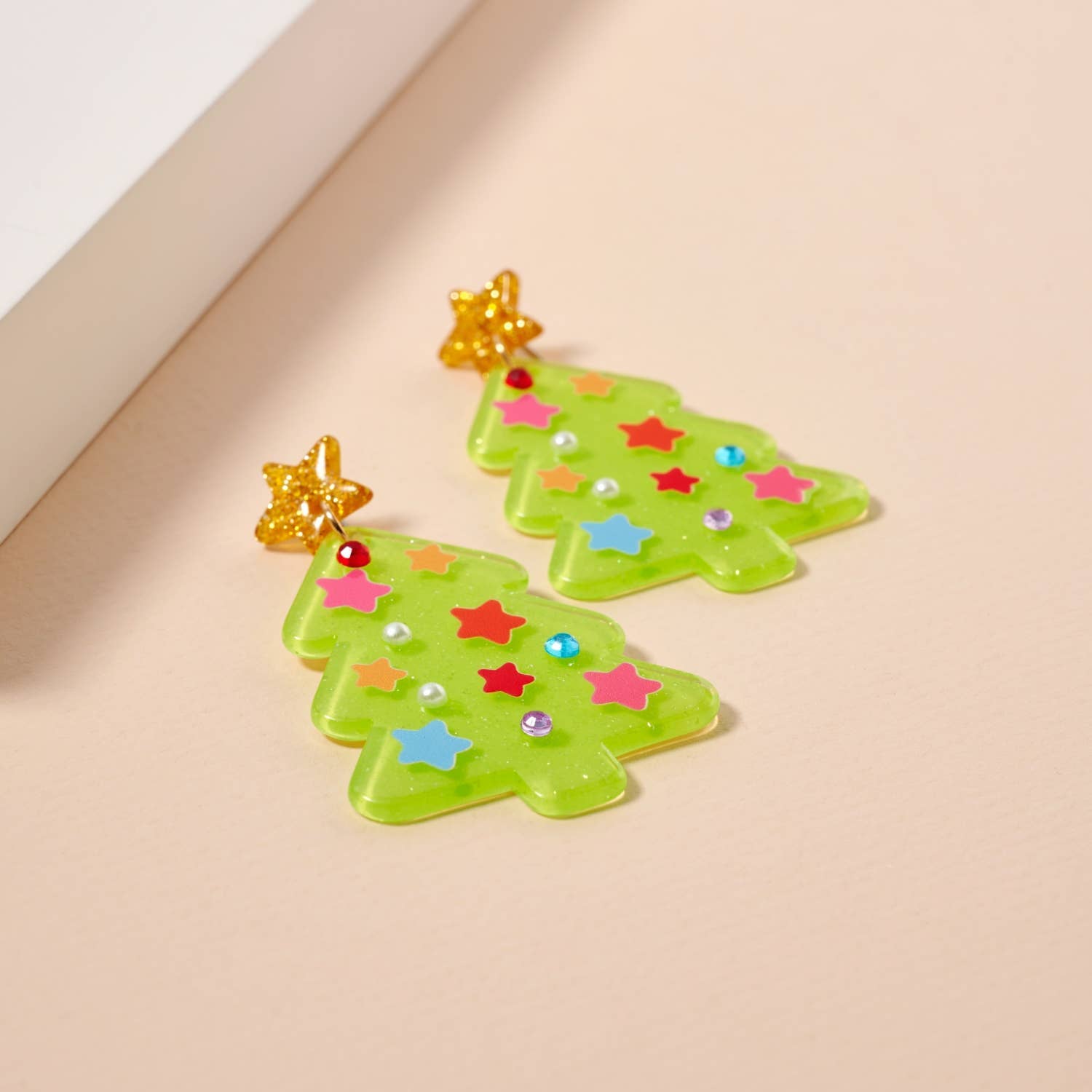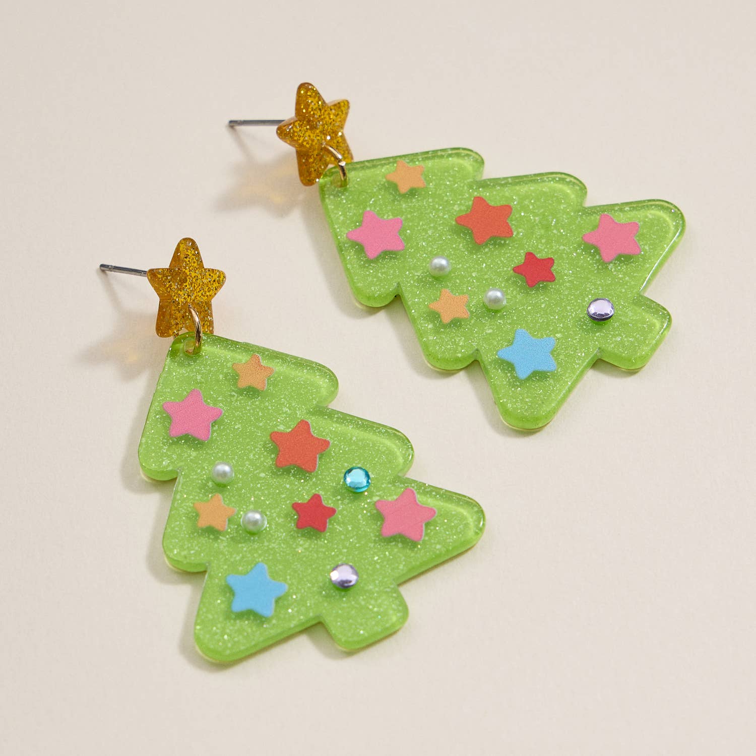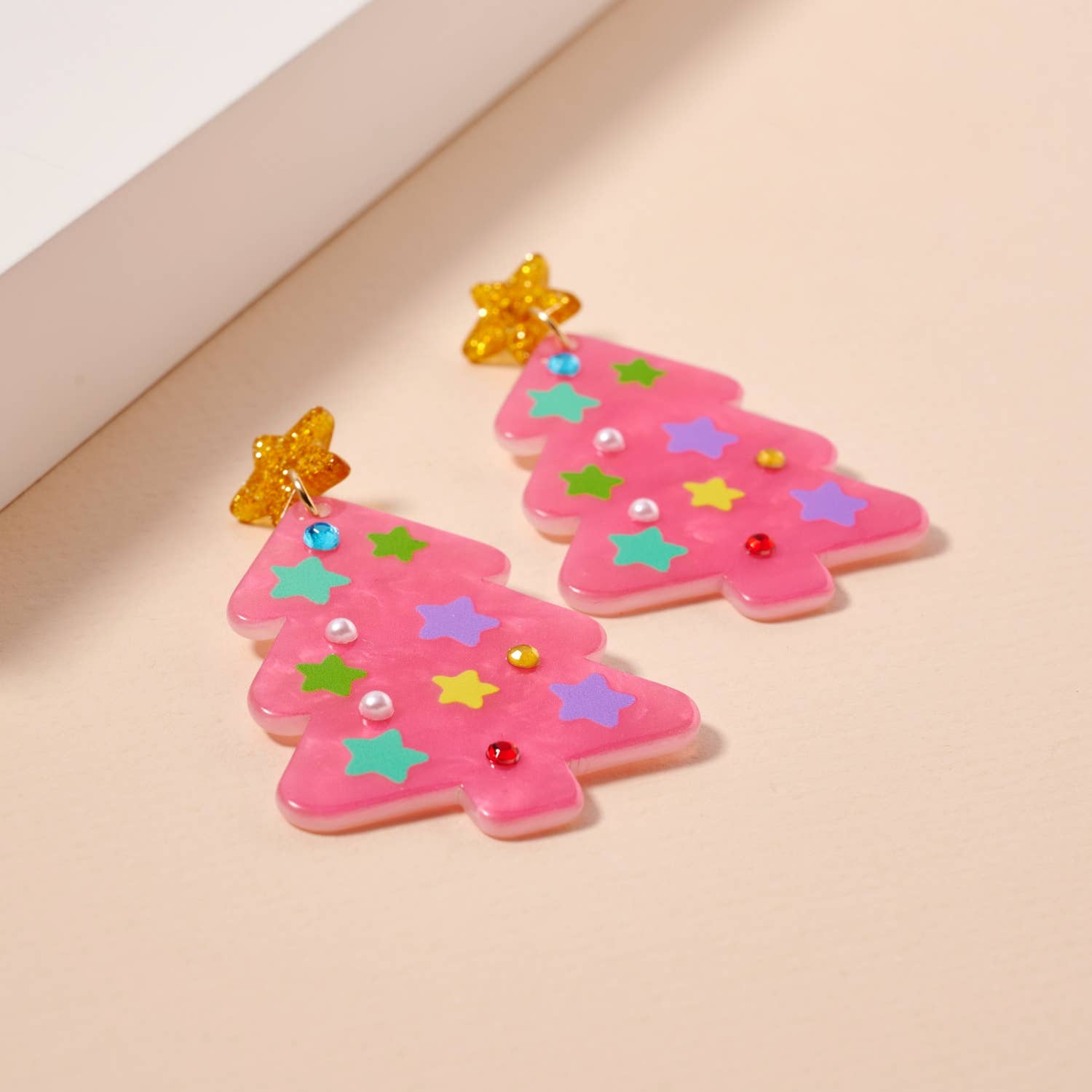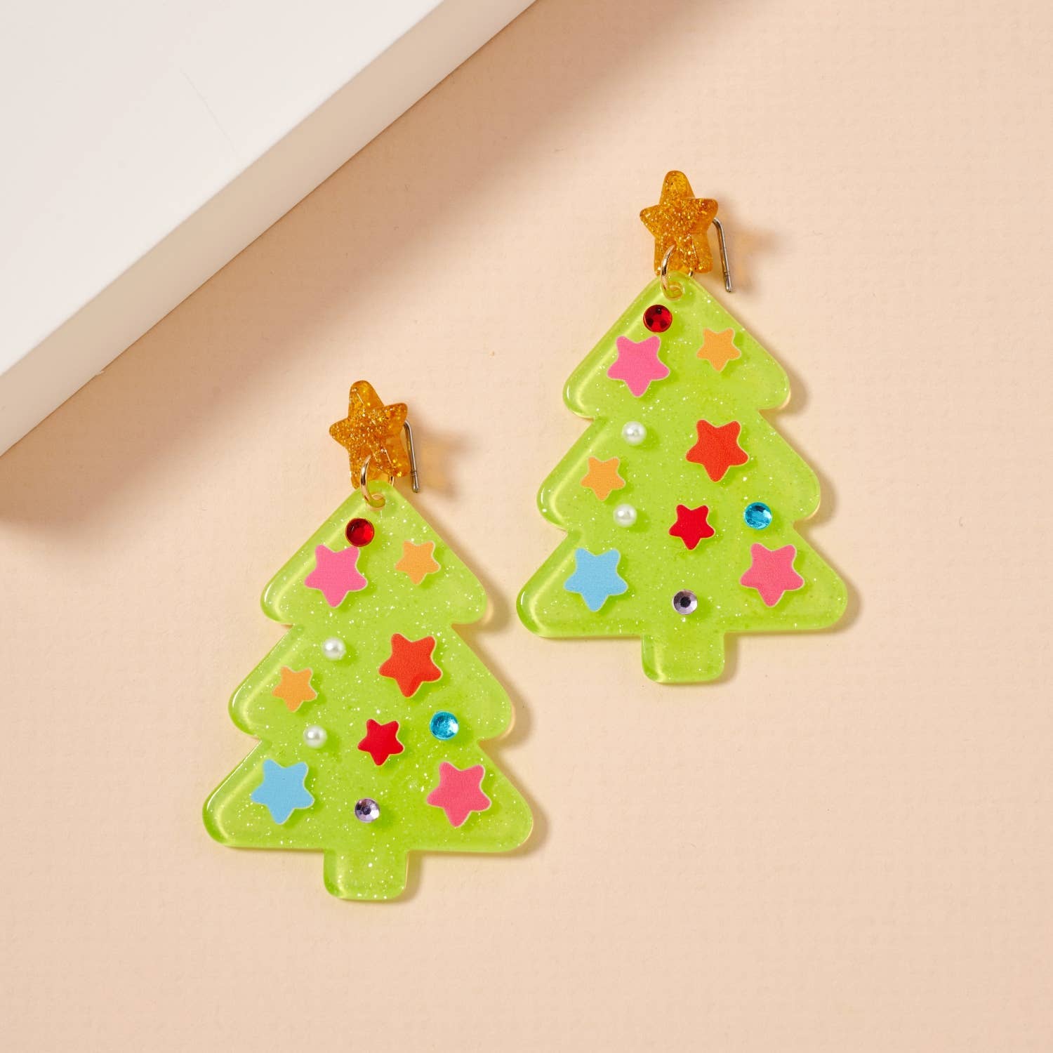 Get festive this holiday season with our Christmas Tree decorated with Stars, pearls and colorful rhinestones Dangling Earrings. Adorned with sparkling stars, these earrings will be the perfect addition to your Christmas attire. Show off your holiday spirit and add a touch of elegance to your look.