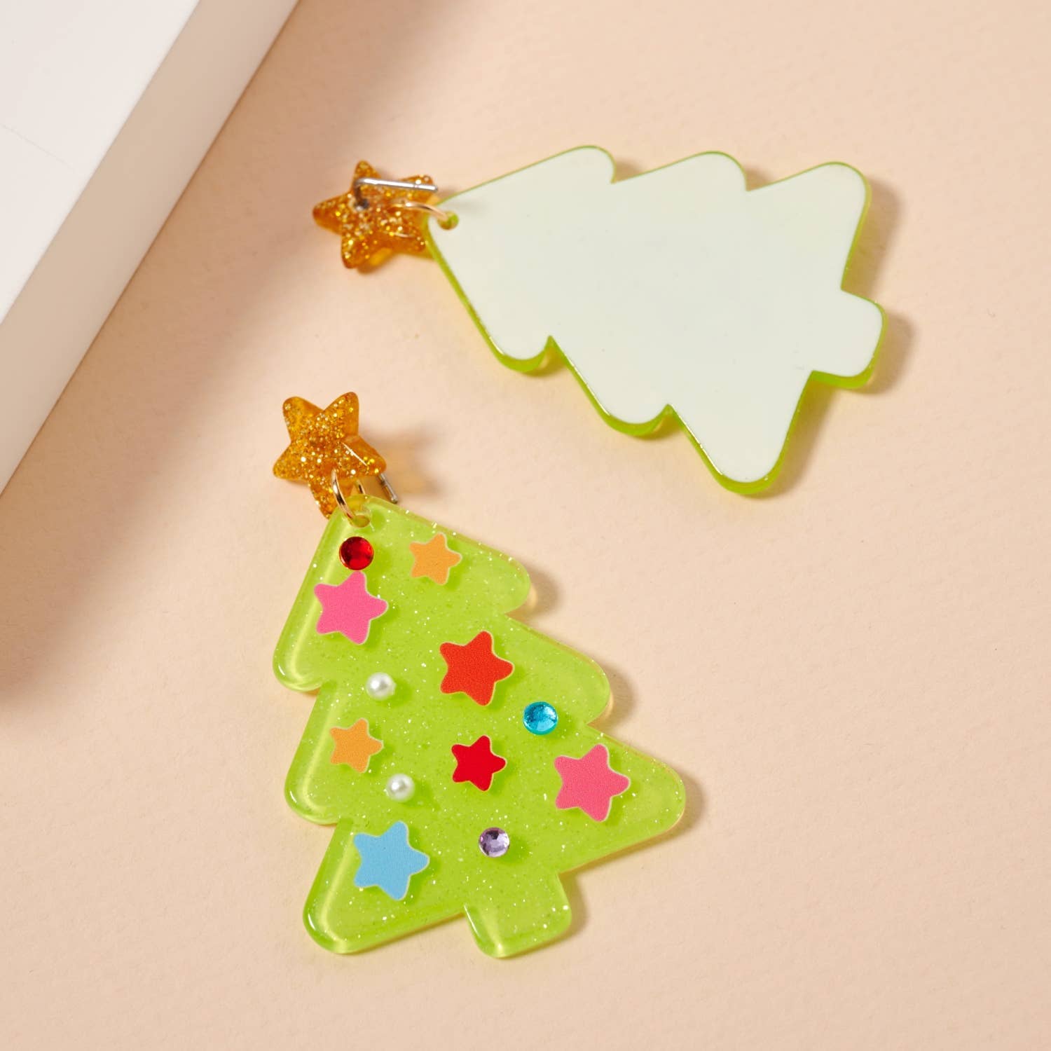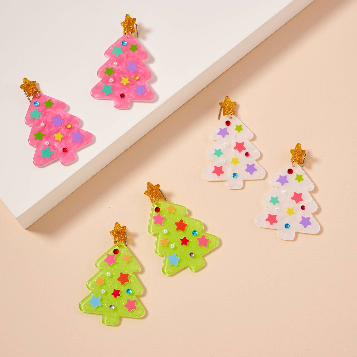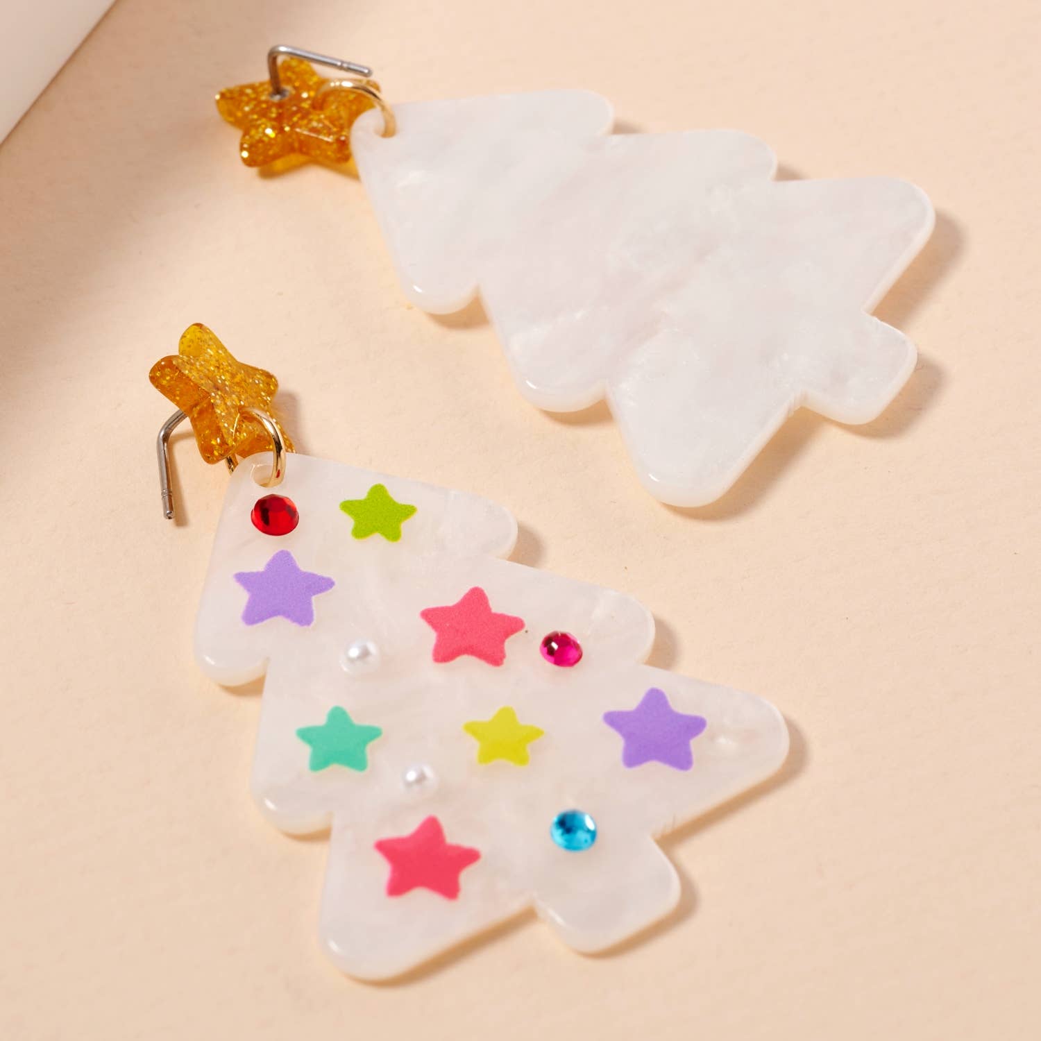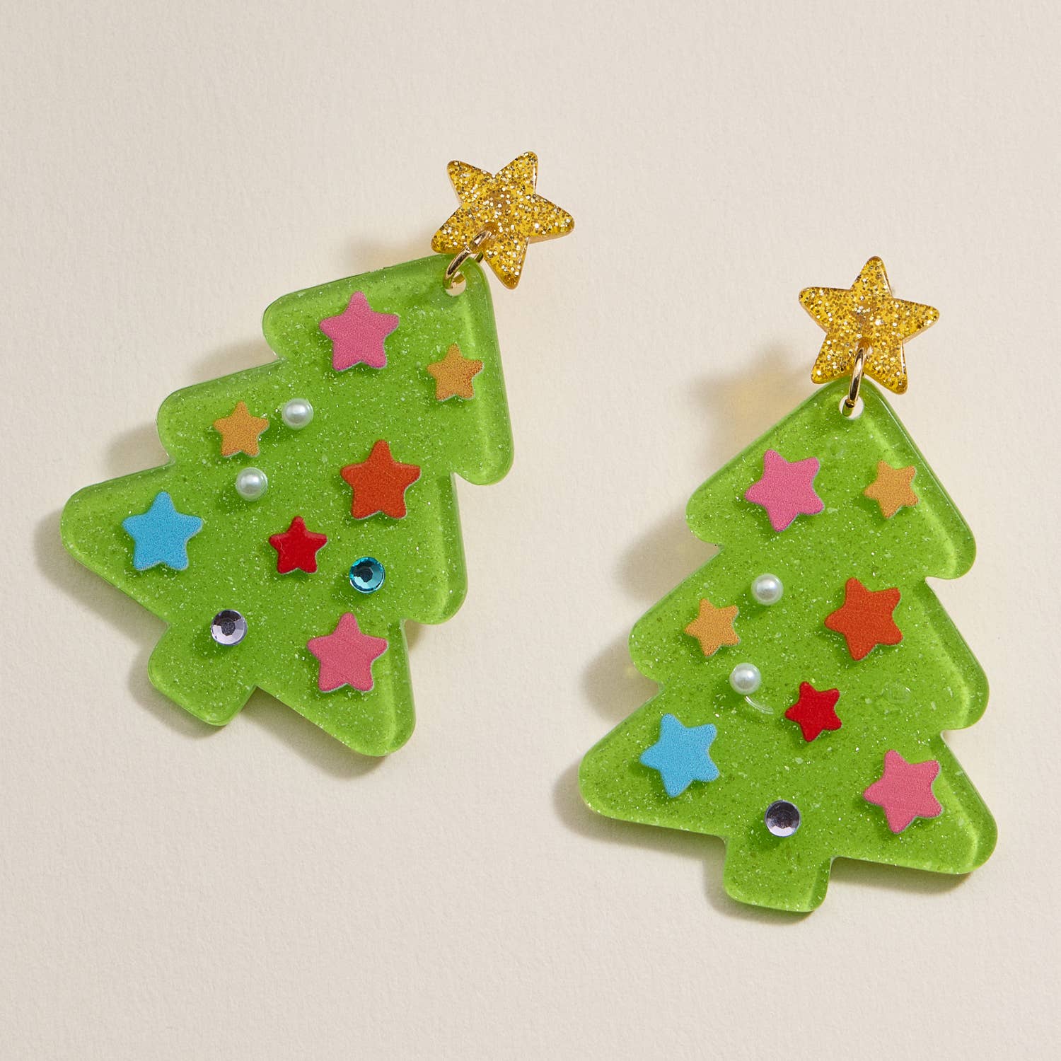 Get festive this holiday season with our Christmas Tree decorated with Stars, pearls and colorful rhinestones Dangling Earrings. Adorned with sparkling stars, these earrings will be the perfect addition to your Christmas attire. Show off your holiday spirit and add a touch of elegance to your look.