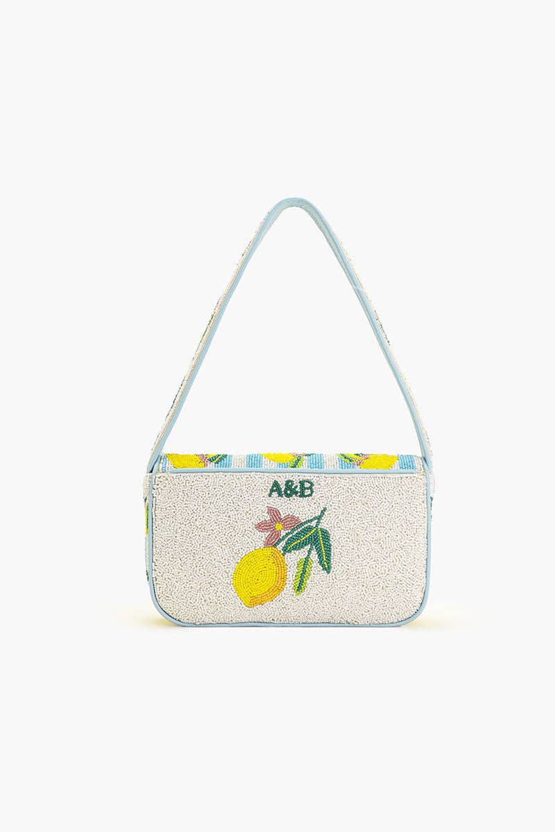 * Structured shoulder bag featuring lemon bunches with blue and white stripes embellishment all over