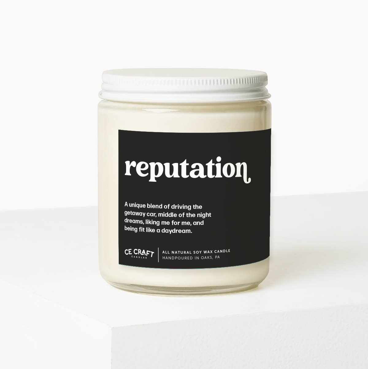 Our Reputation candle is a unique blend of driving the getaway car, middle of the night dreams, liking me for me, and being fit like a daydream.