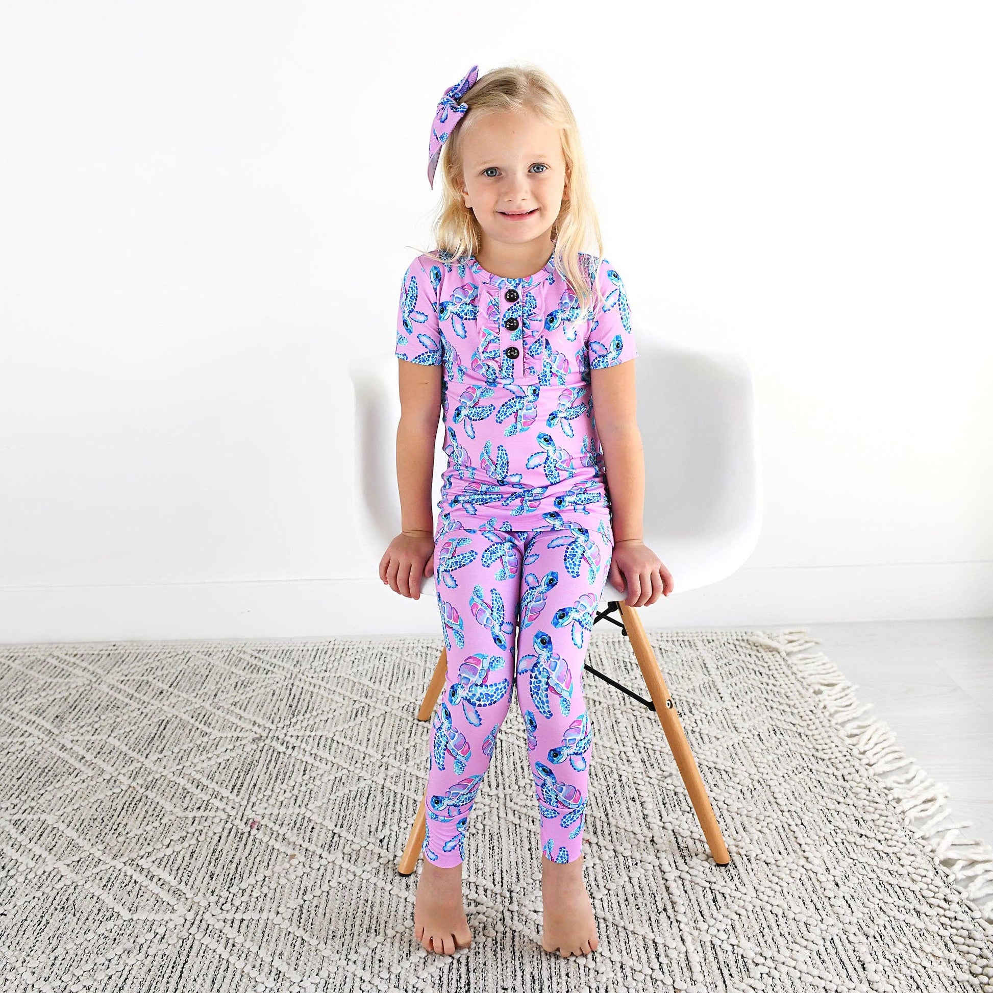 Waverly Sea Turtles Ruffle Two Piece Bamboo Kids Lounge Set