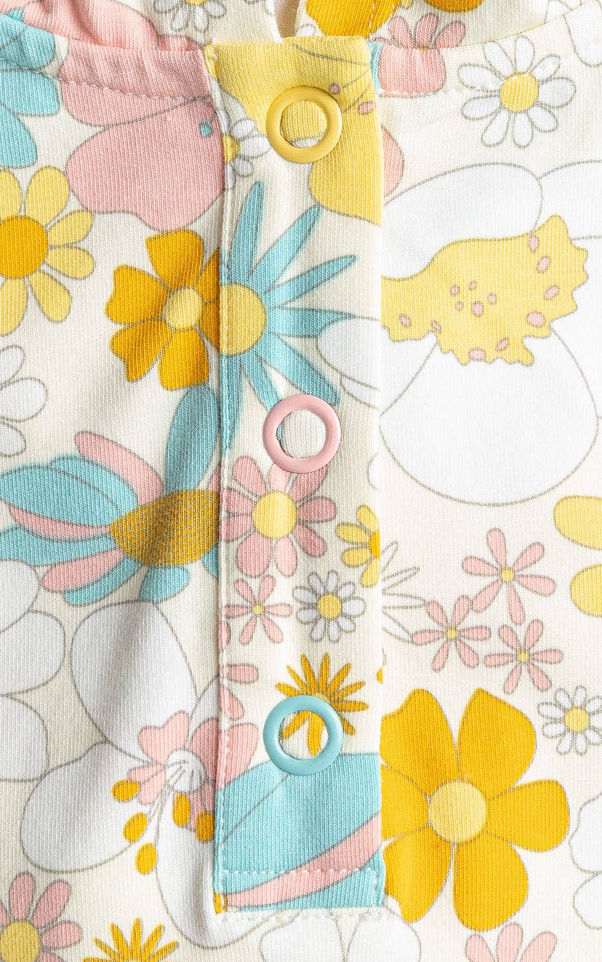 Designed with the retro spirit in mind, the all-knit Wildflowers Romper is a groovy get-up-and-go style. With a lined hood, enamel-covered ring snaps, and an open back with elastic (for easy bathroom trips!), this one is ready for your flower child.